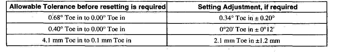 Front Wheel Alignment - Toe Setting - All Variants - At Curb Condition
