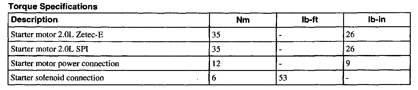 Starting System: Specifications