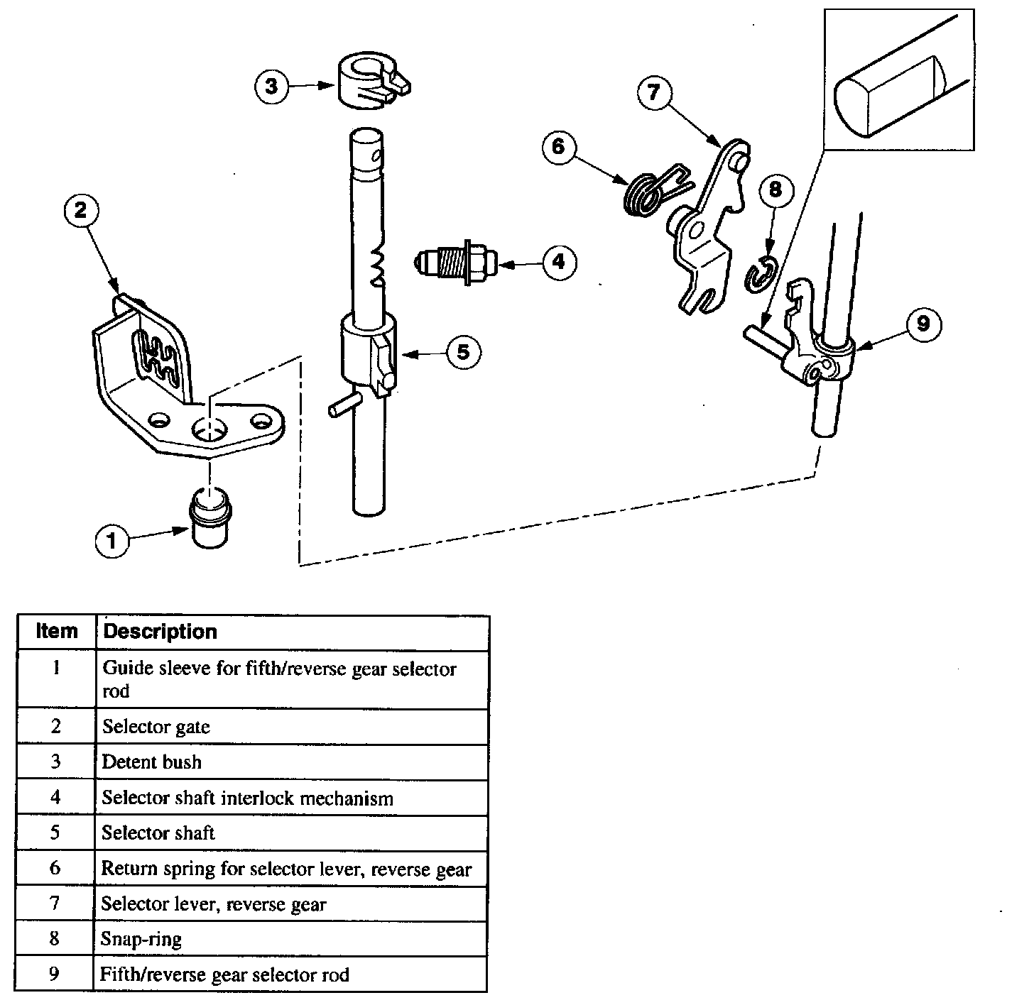 1. Fifth/reverse gear selector rod
