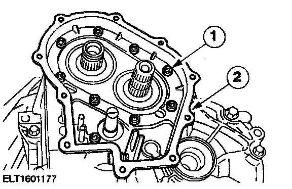 1. Loosen the bolts and carefully separate the fifth gear housing sections by tapping lightly.