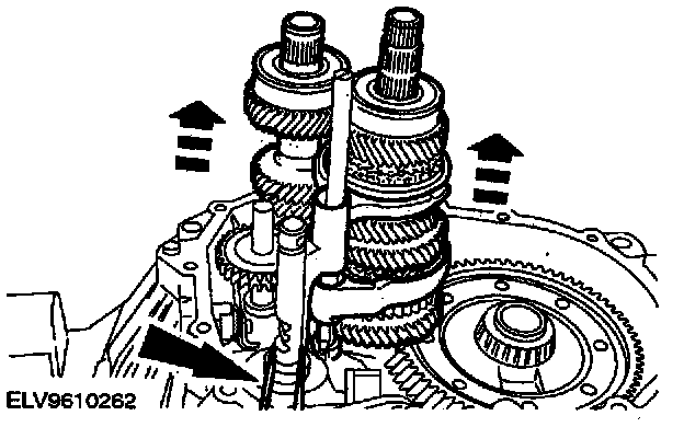10. Remove the fifth gear synchronizer unit together with the selector fork.