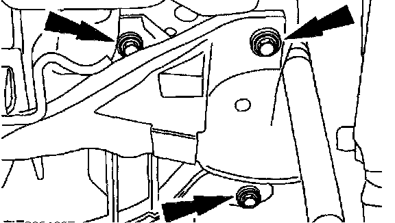 8. Remove the crossmember retaining bolts (three bolts each side).