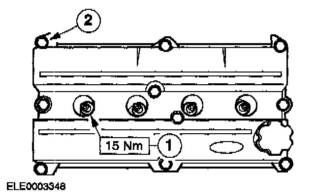 2. Tighten the cylinder head cover bolts in two stages.