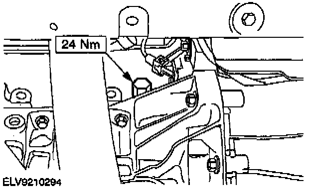 ^ Remove the temporary bolt from the rear catalytic converter bracket.