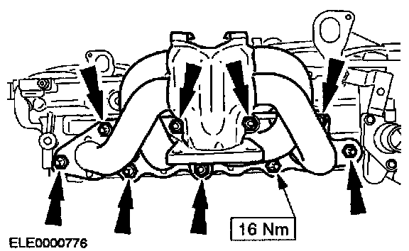 ^ Do not allow debris to fall into the exhaust manifold.