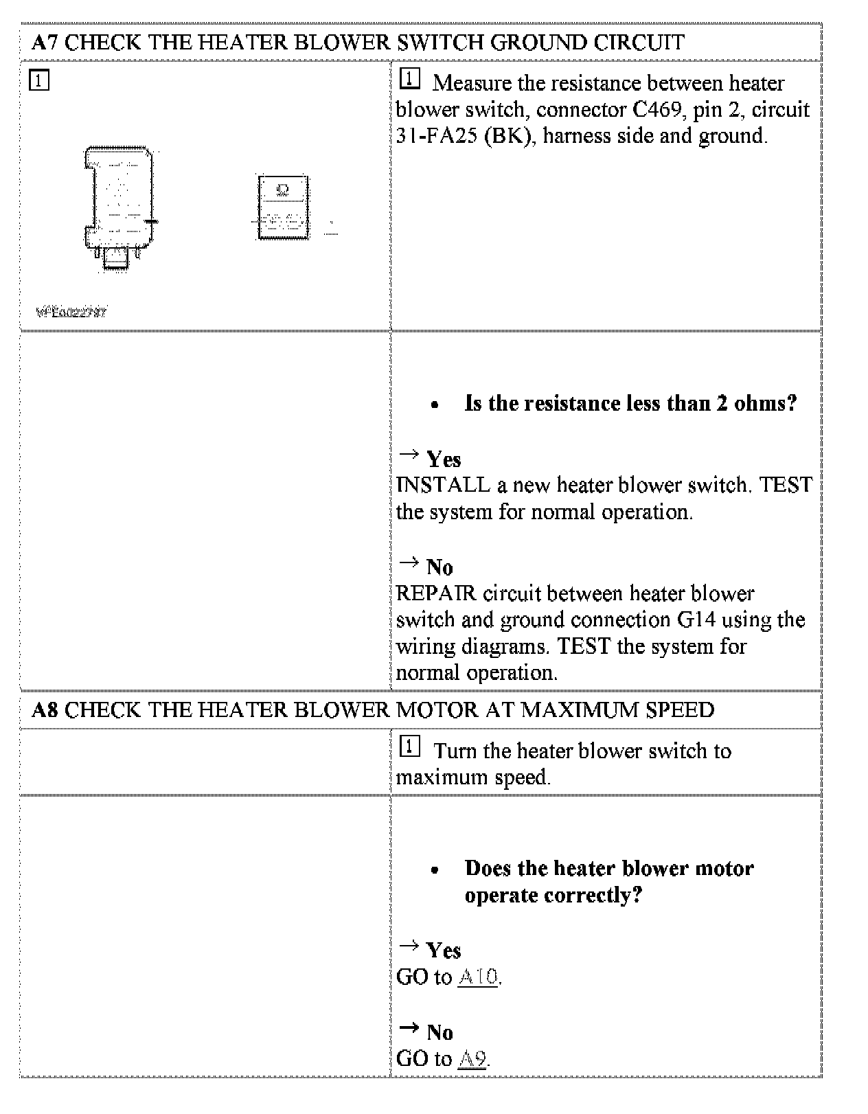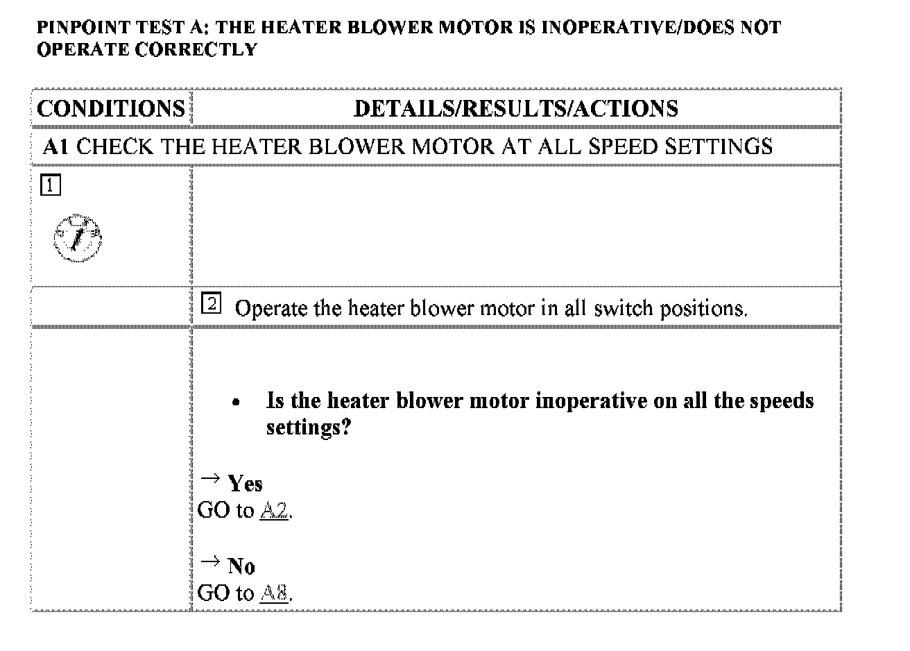 PINPOINT TEST A: THE HEATER BLOWER MOTOR IS INOPERATIVE/DOES NOT OPERATE CORRECTLY