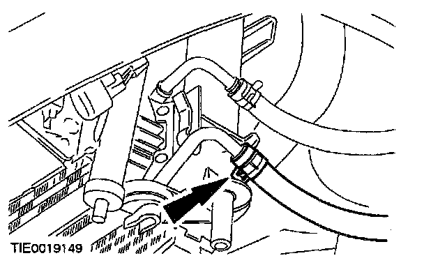3. Attach a length of suitable drain hose to the transmission fluid cooler return hose.