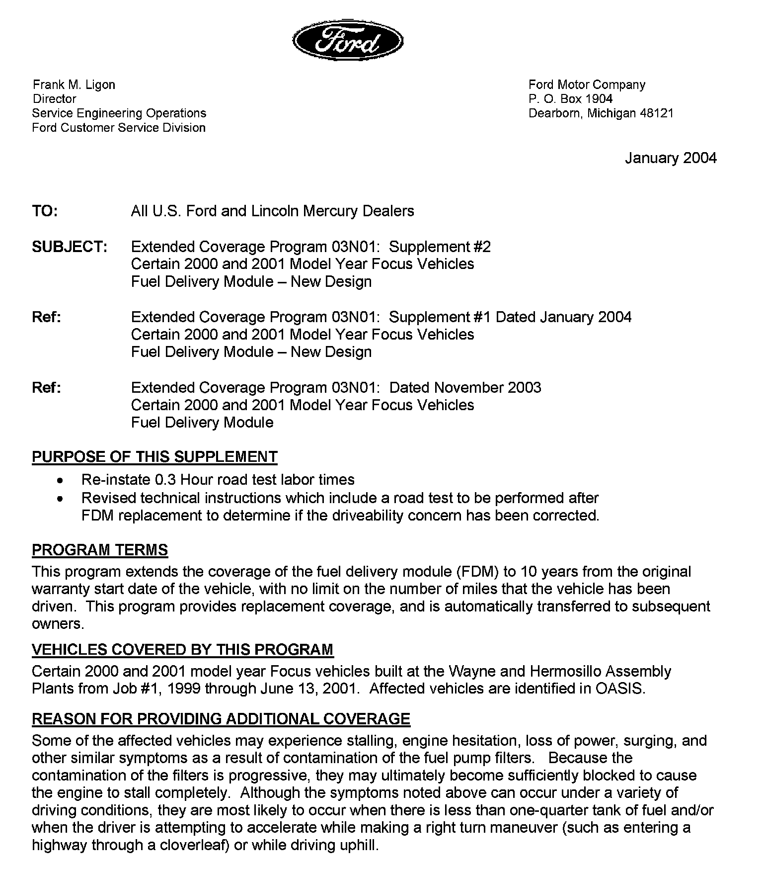Recall - Fuel Delivery Module Defect