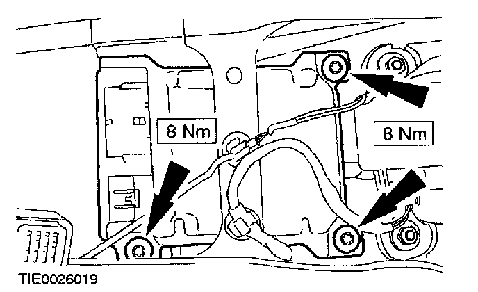 5. NOTE: The air bag control module is grounded by the retaining bolts.