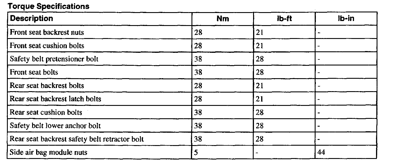 Torque Specifications: