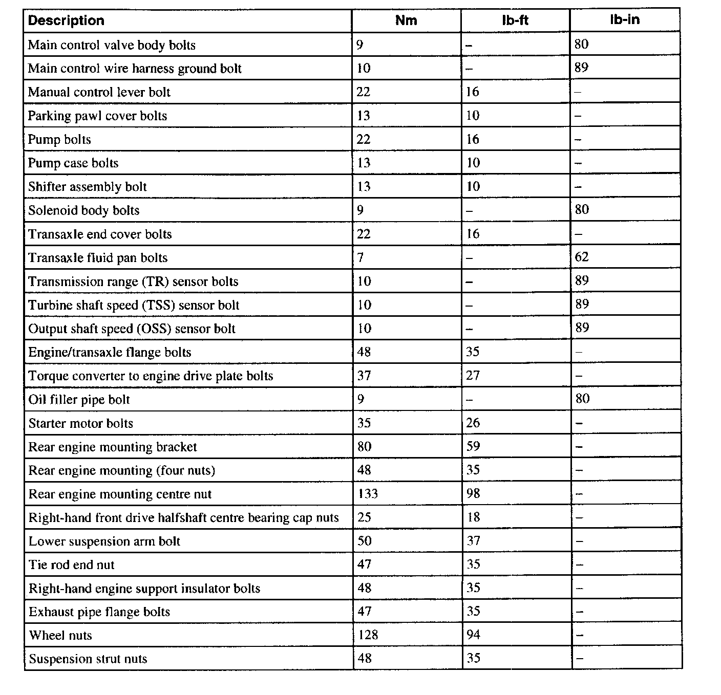 Torque Specifications