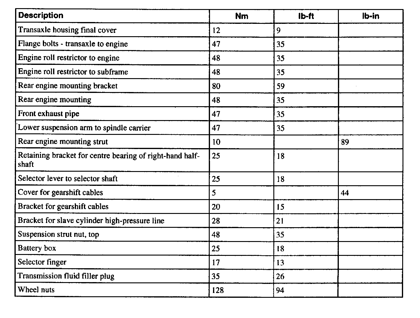 Torque Specifications