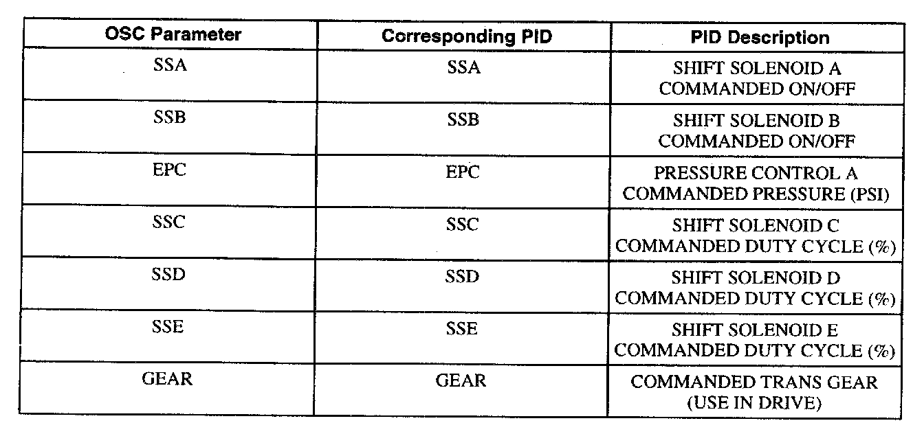 Using Output State Control (OSC) and Accessing PIDsTo confirm that the OSC value was sent by the NGS and the PCM has accepted the OSC substitution, a corresponding PID or PIDs for each OSC parameter should be monitored. Additional PTDs should be monitored to help the technician adequately diagnose the transaxle.