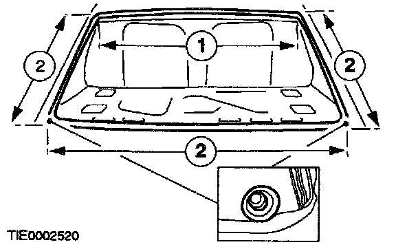 2. Check the pinch weld sealing area for damaged sheet metal, rust or foreign material which may have caused, or may cause glass breakage.