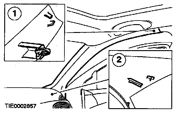 ^ Place two blocks of suitable material between the headliner and the roof panel to act as spacers.