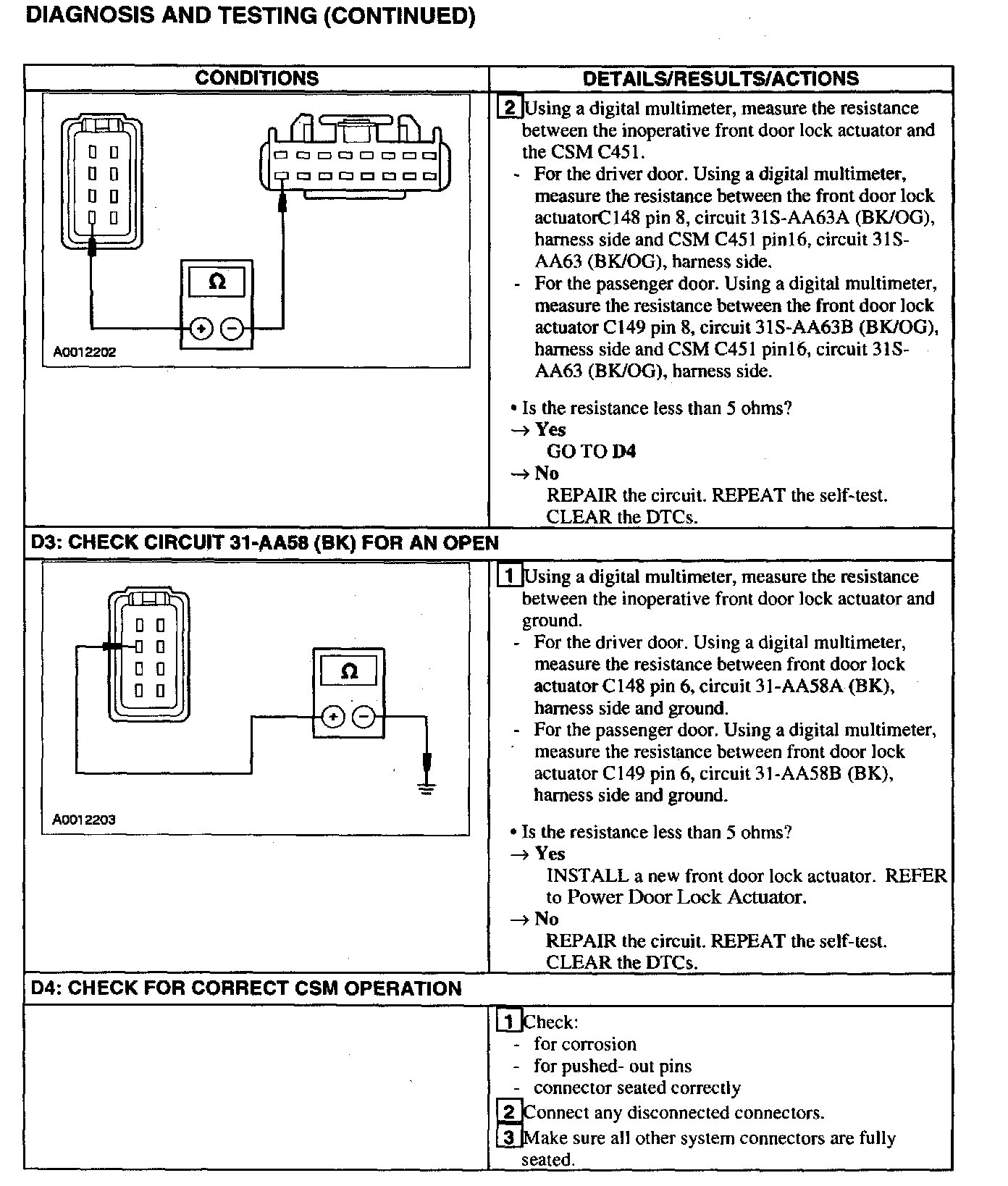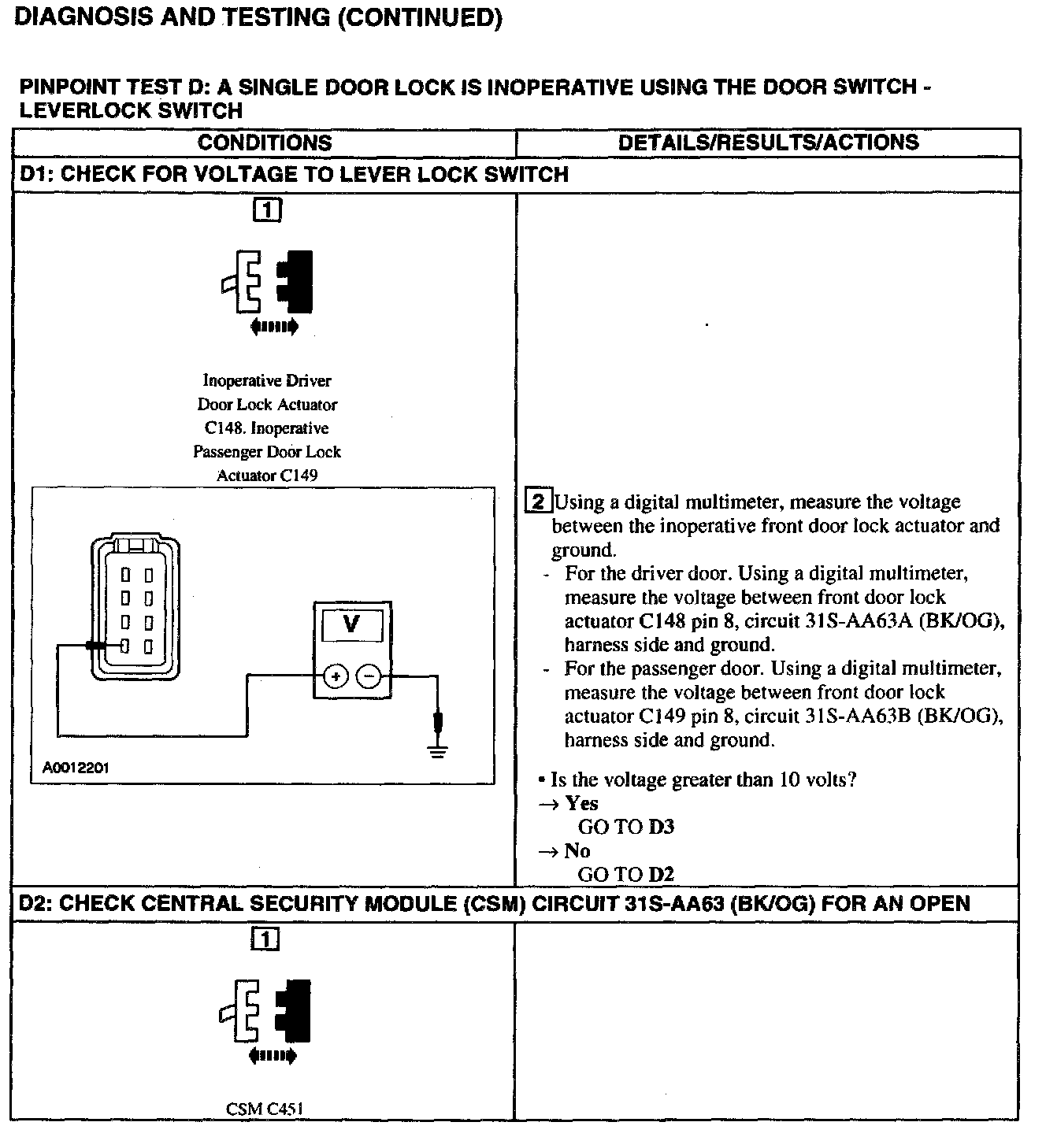 Test D: Door Lock Inoperative Using Door Switch - Leverlock Switch
