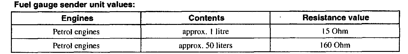 Since the input value fluctuates constantly because of the movement of the fuel in the tank, the trip computer module processes the value after a time delay using an algorithm. If the circuit to the fuel gauge sender unit is broken or shorted, the following display is output: (---)