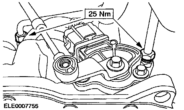 Disconnect the feed and return hose from the transmission fluid cooler.