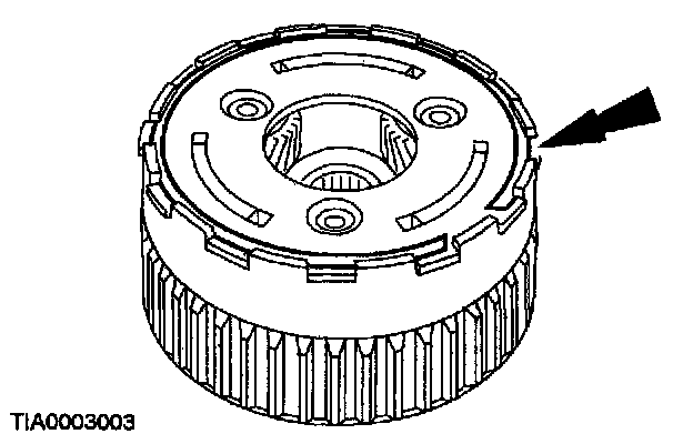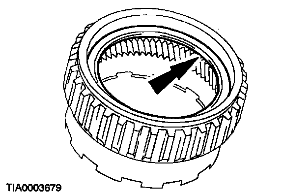 3. Make sure the low one-way clutch is installed with the tab pointing in the direction as shown.