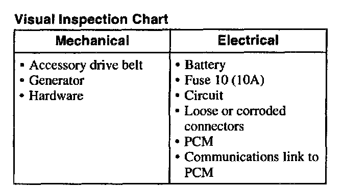 Visual Inspection Chart: