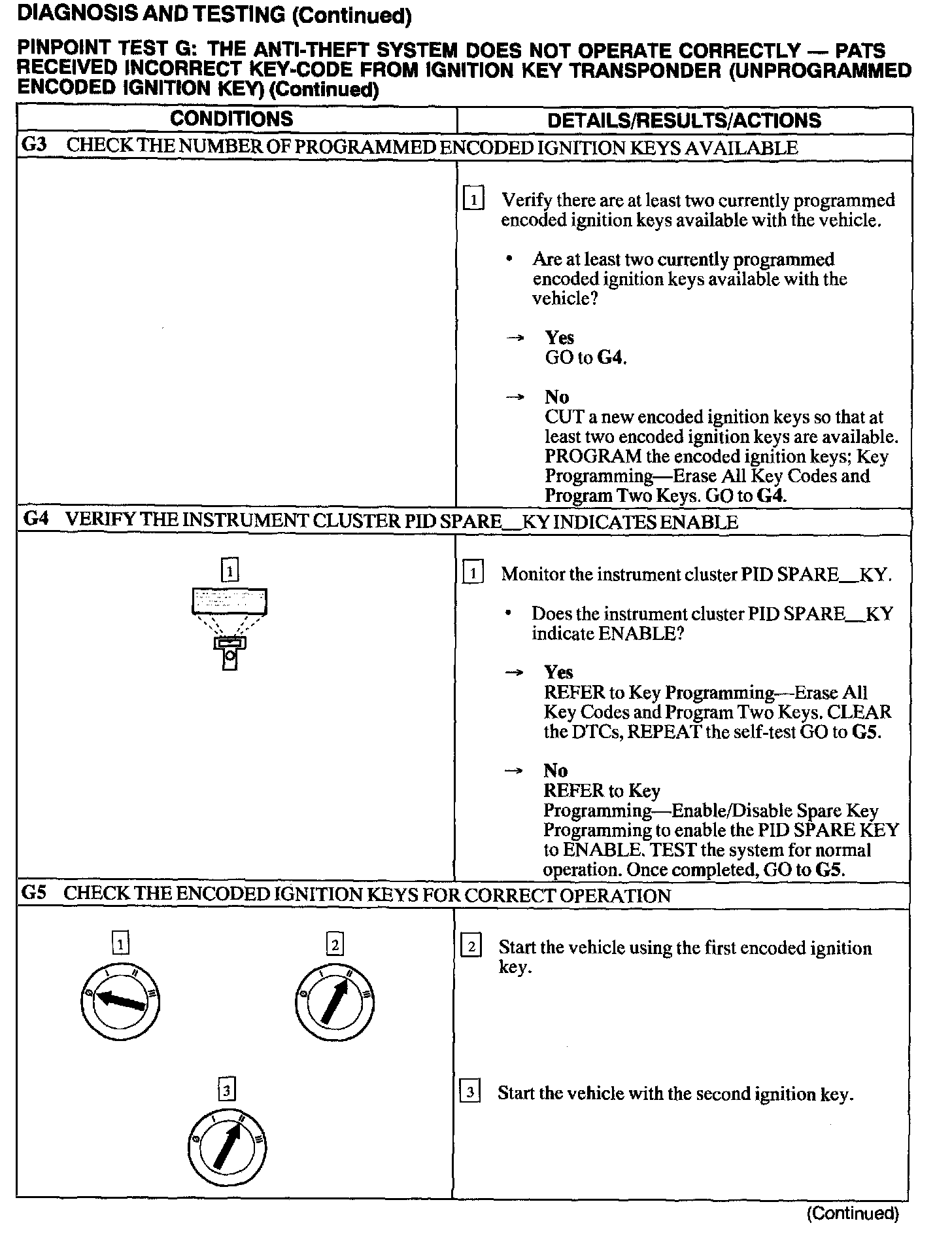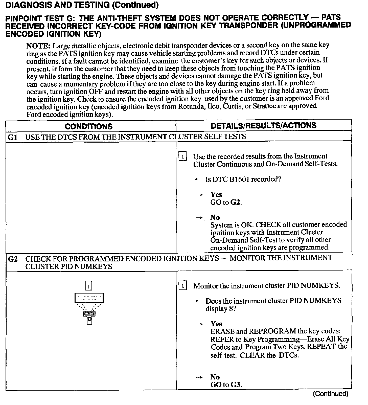 G: Anti-Theft System In-Op.- PATS Received Incorrect Key-code From Ignition Key Transponder (unprogrammed IGNITION KEY)