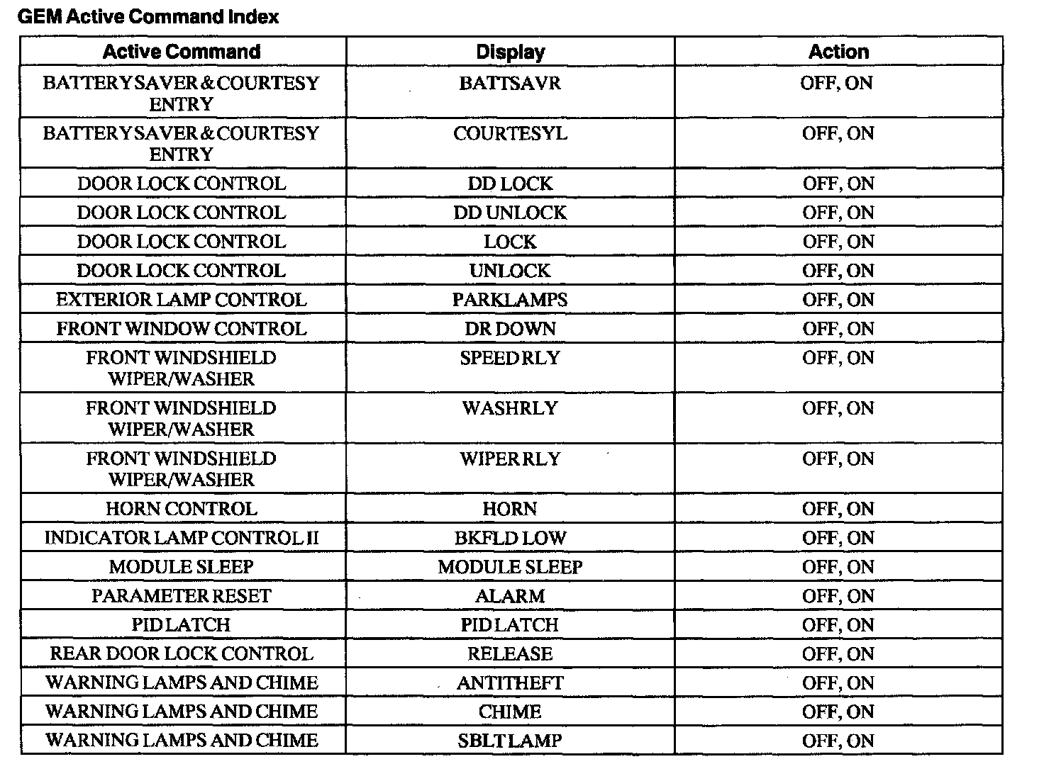 GEM Active Command Index: