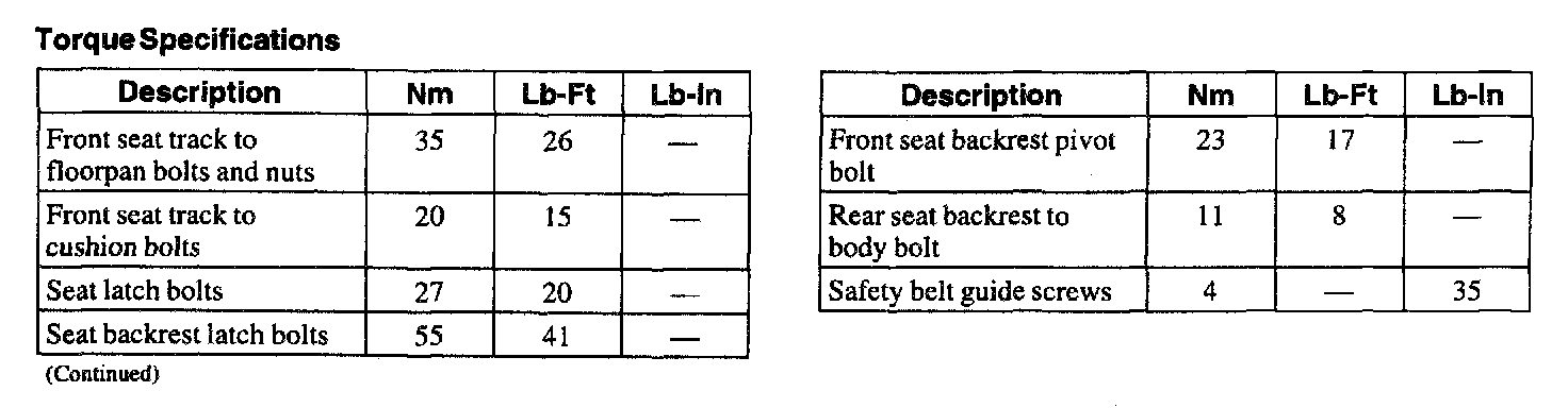 Torque Specifications: