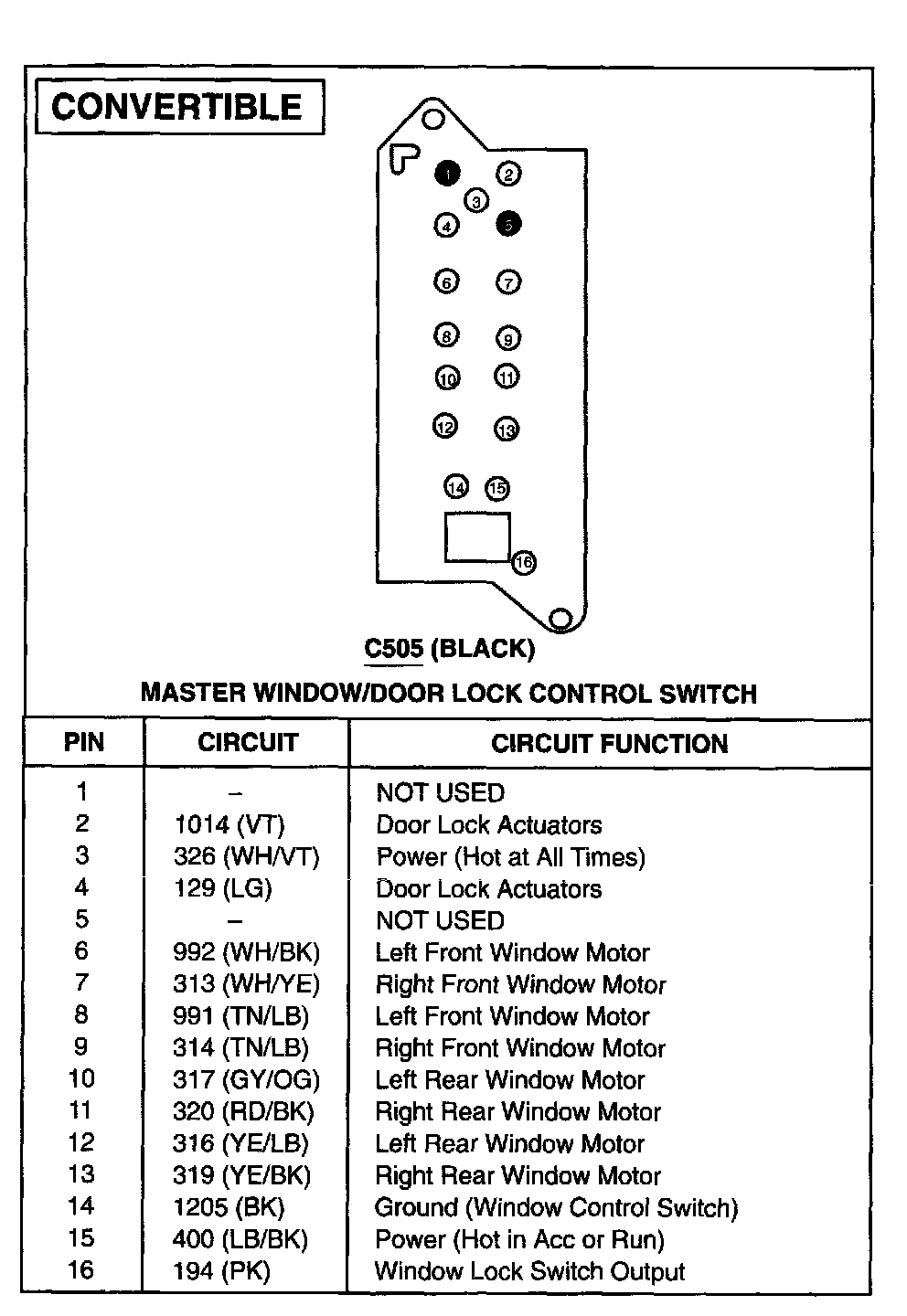 Master Window/Door Lock Control Switch
