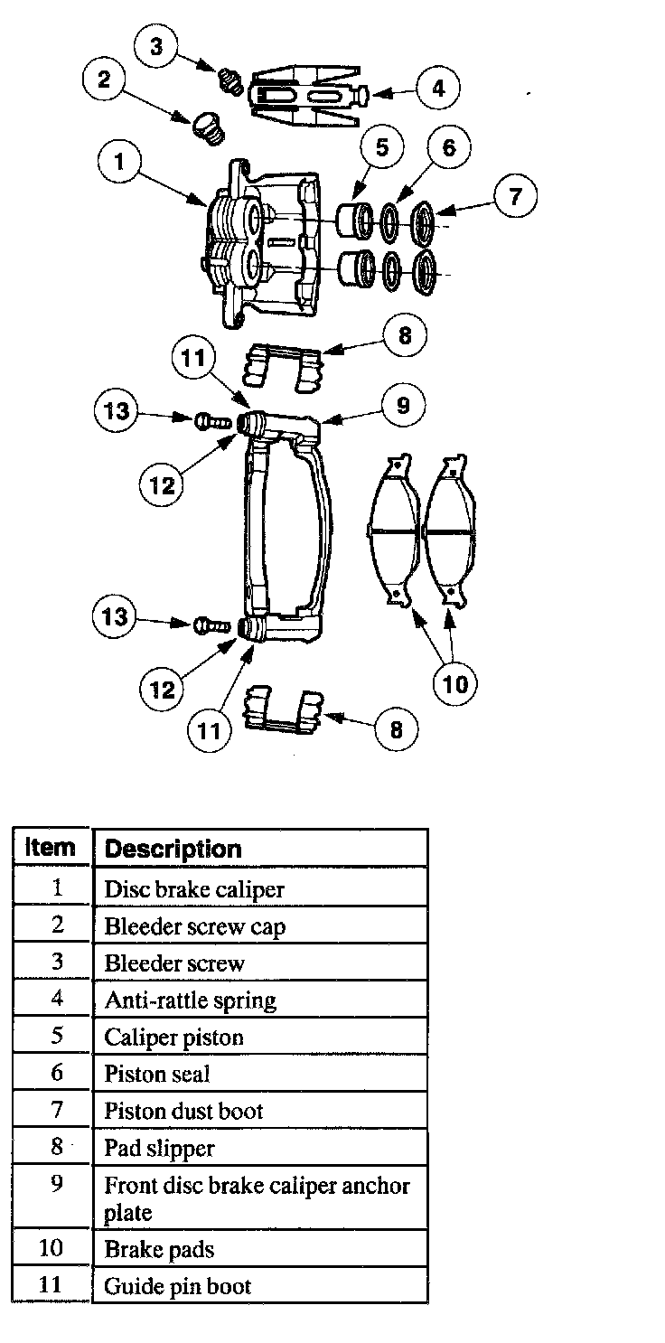 Front Disc Brake Caliper Components