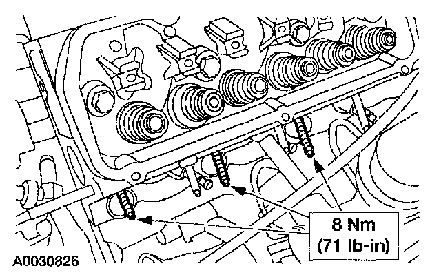 - Tighten long bolts to 45 Nm (33 ft. lbs.), then tighten an additional 180 degrees.