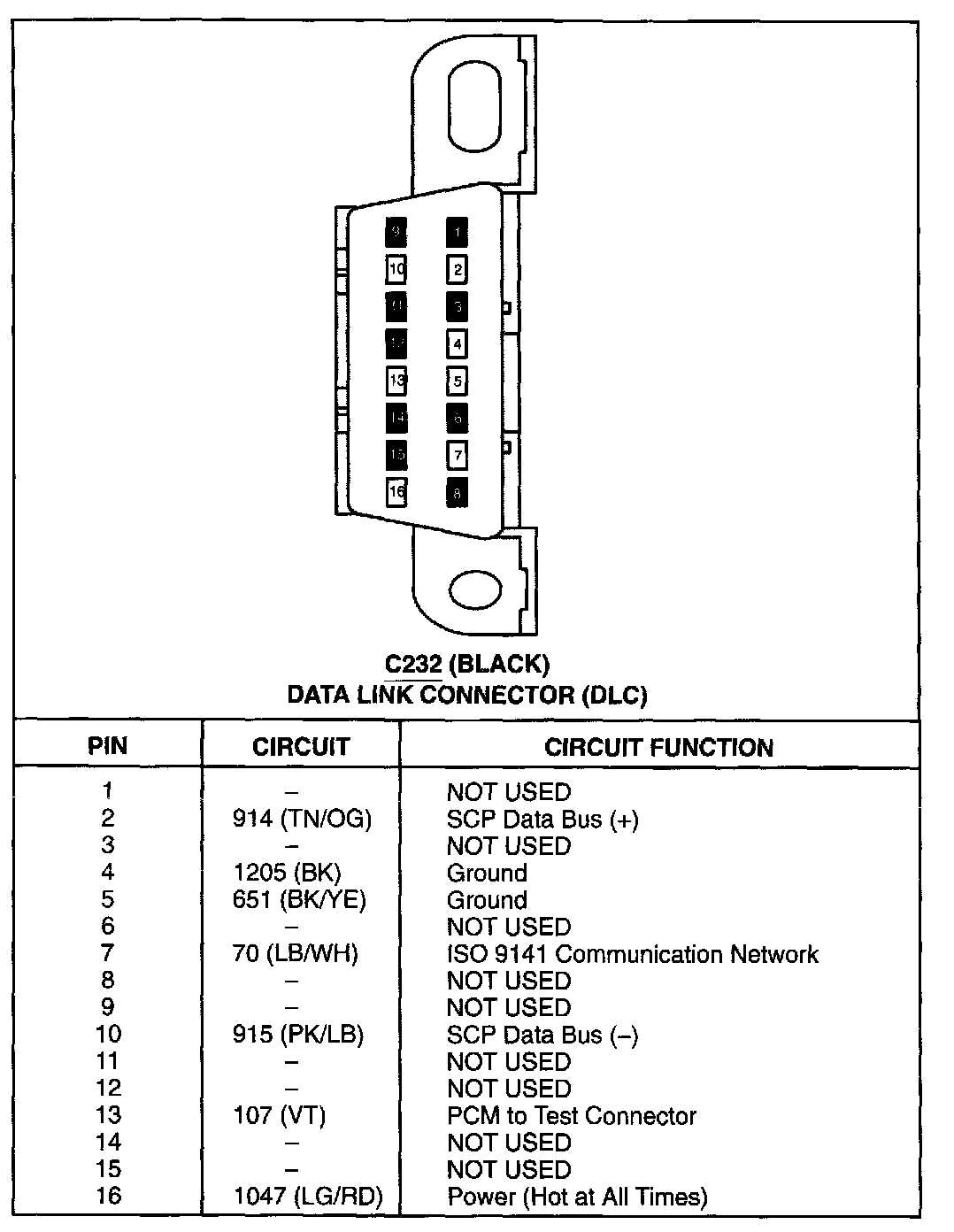 Data Link Connector: Diagrams