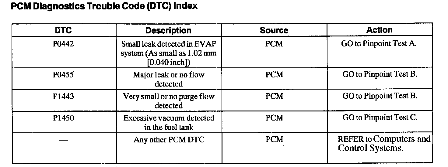 DTC Index P0442 - P1450: