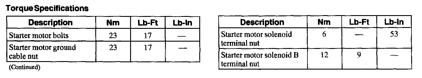 Torque Specifications: