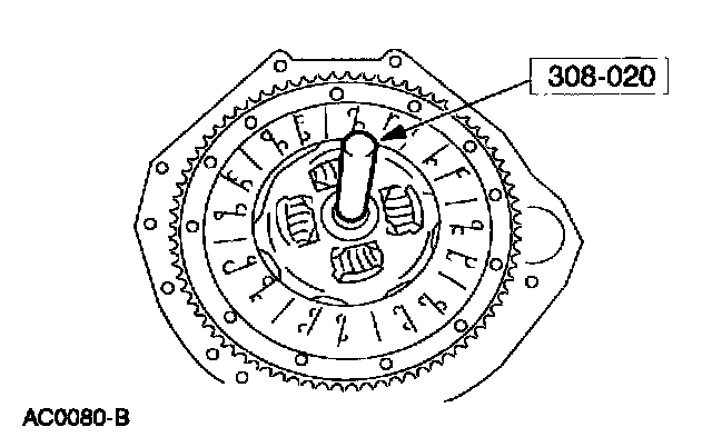 ^ Using the special tool, align the clutch pressure plate and install it on the dowels.