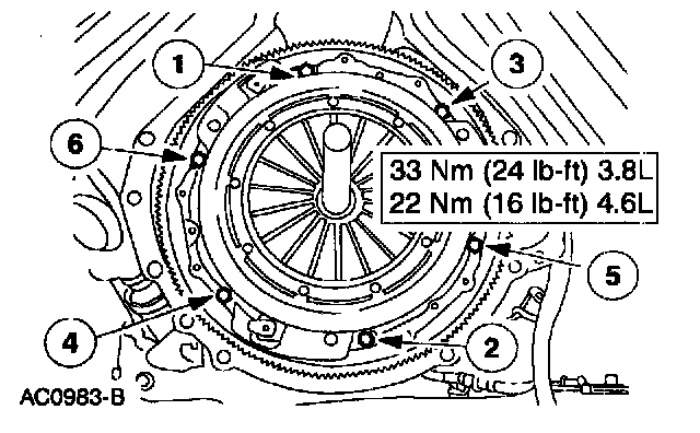 3. 4.6L (4V)-Tighten the bolts in two steps in the sequence shown.