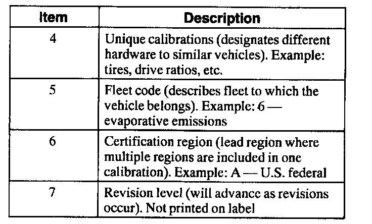 NOTE: Powertrain calibration information is limited to a maximum of five characters per line on the Vehicle Certification Label. Because of this, calibration identification consisting of more than five characters will wrap to the second line on the VC label.