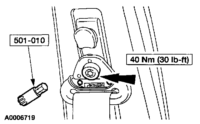1. Using the special tool, remove the safety belt D-ring cover and the D-ring bolt.