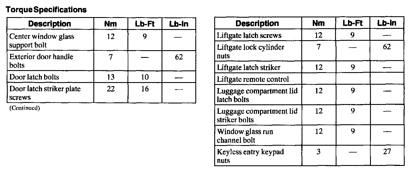 Torque Specifications: