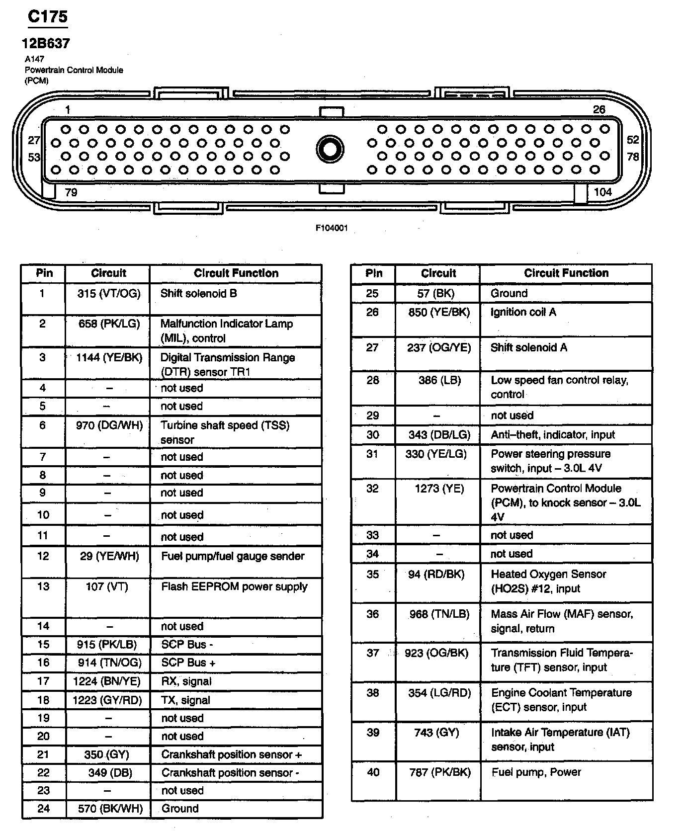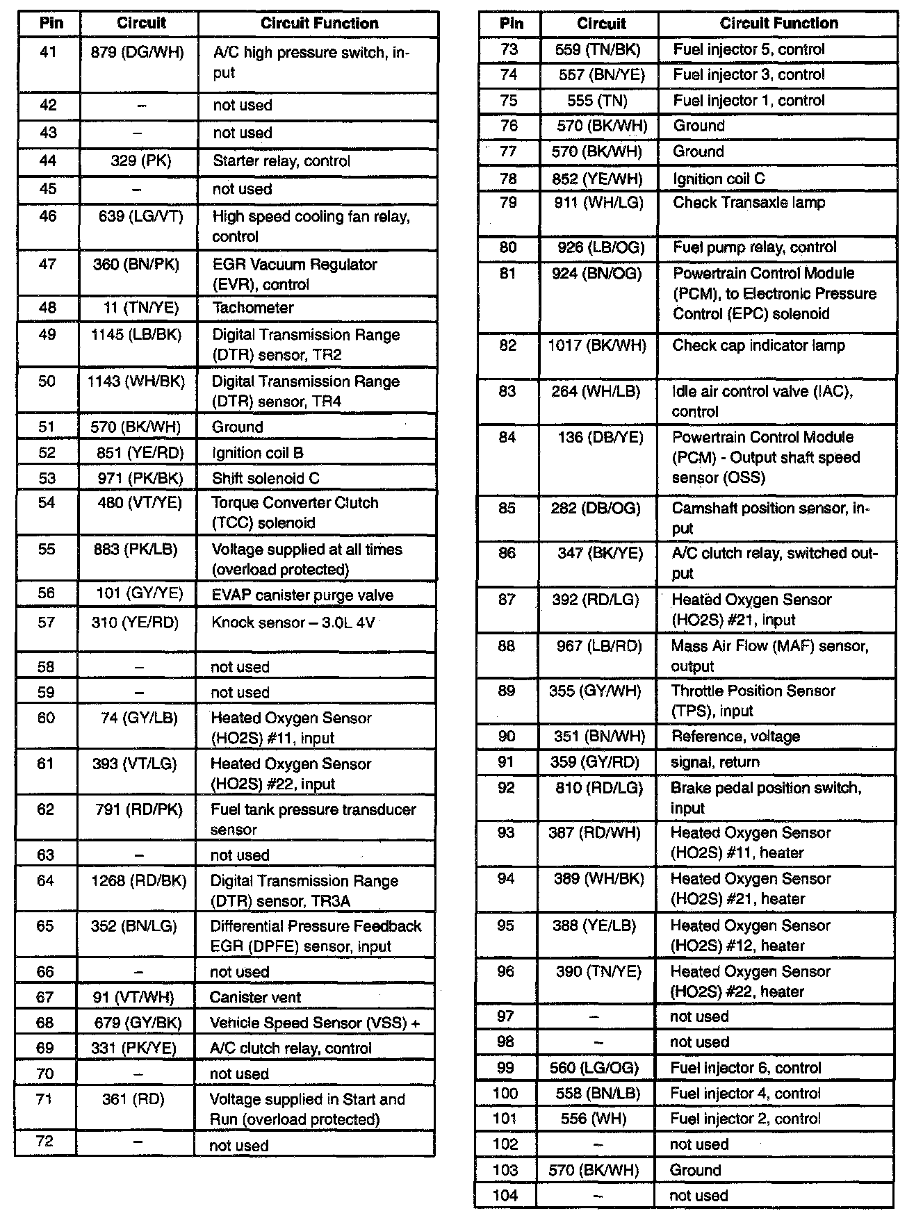 Taurus V6-3.0L VIN U