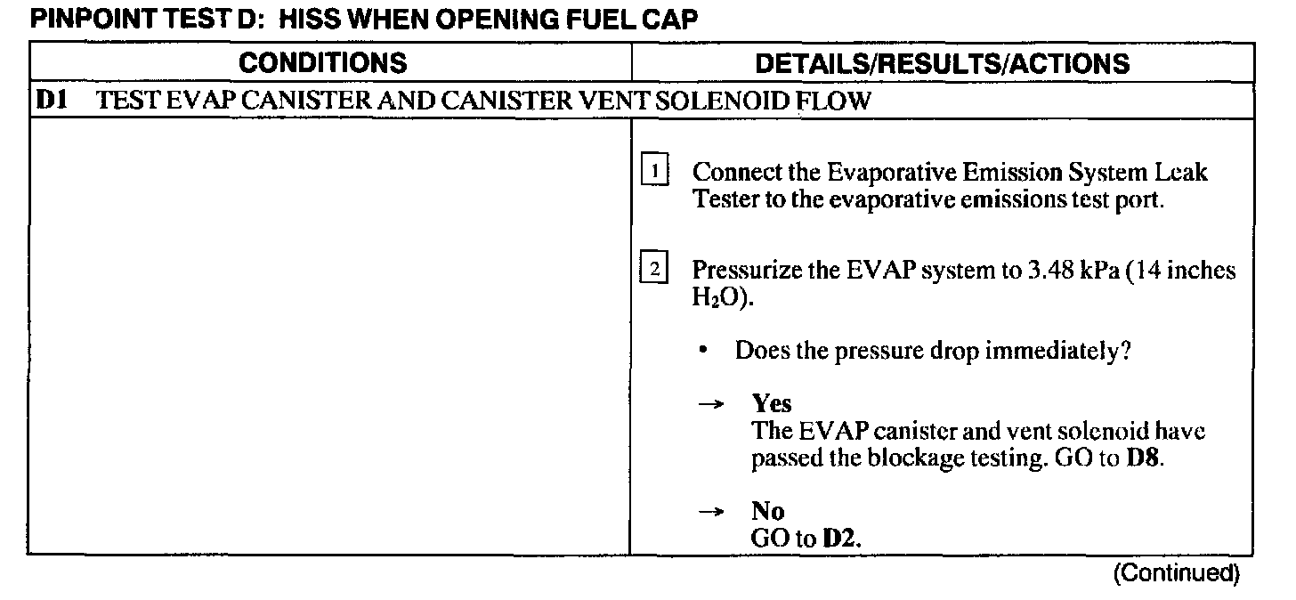 Test D: Hiss When Opening Fuel Cap
