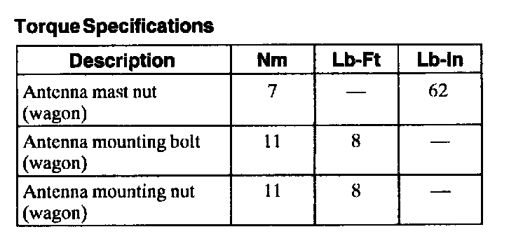 Torque Specifications: