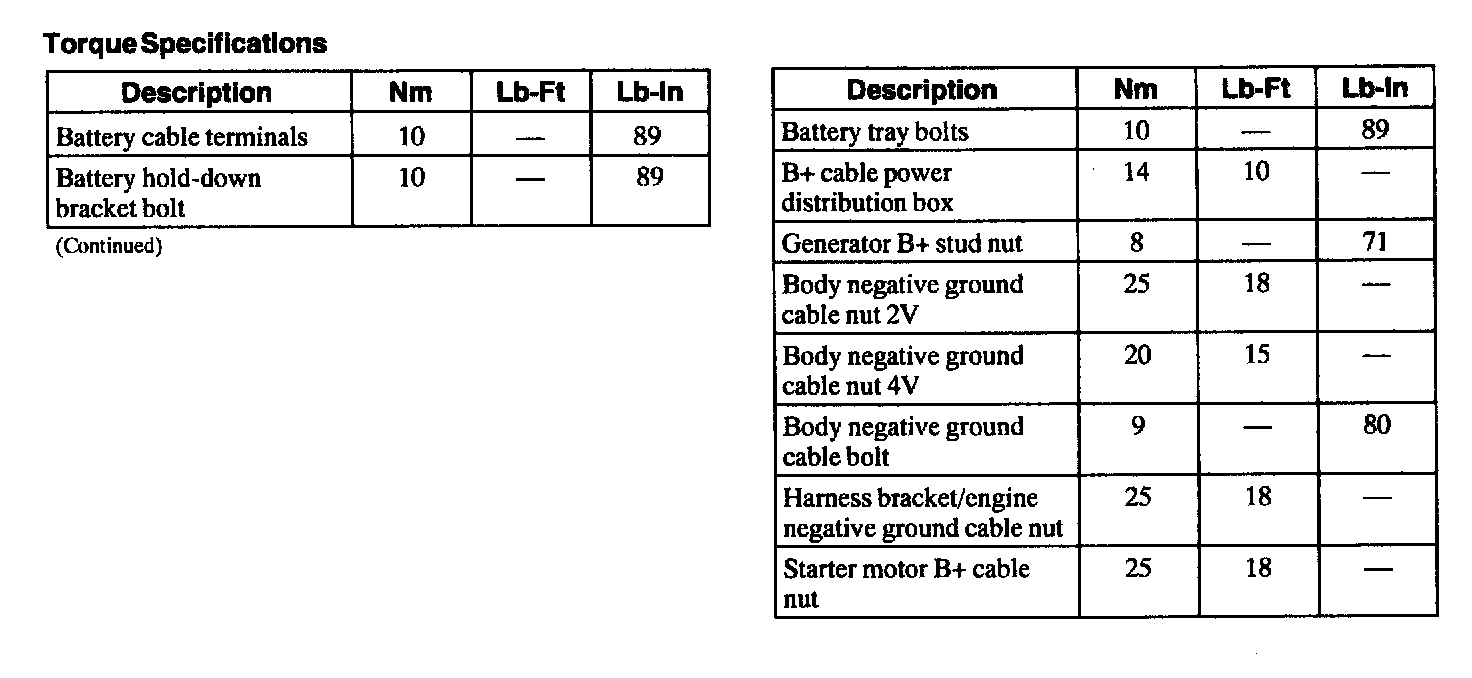 Torque Specifications:
