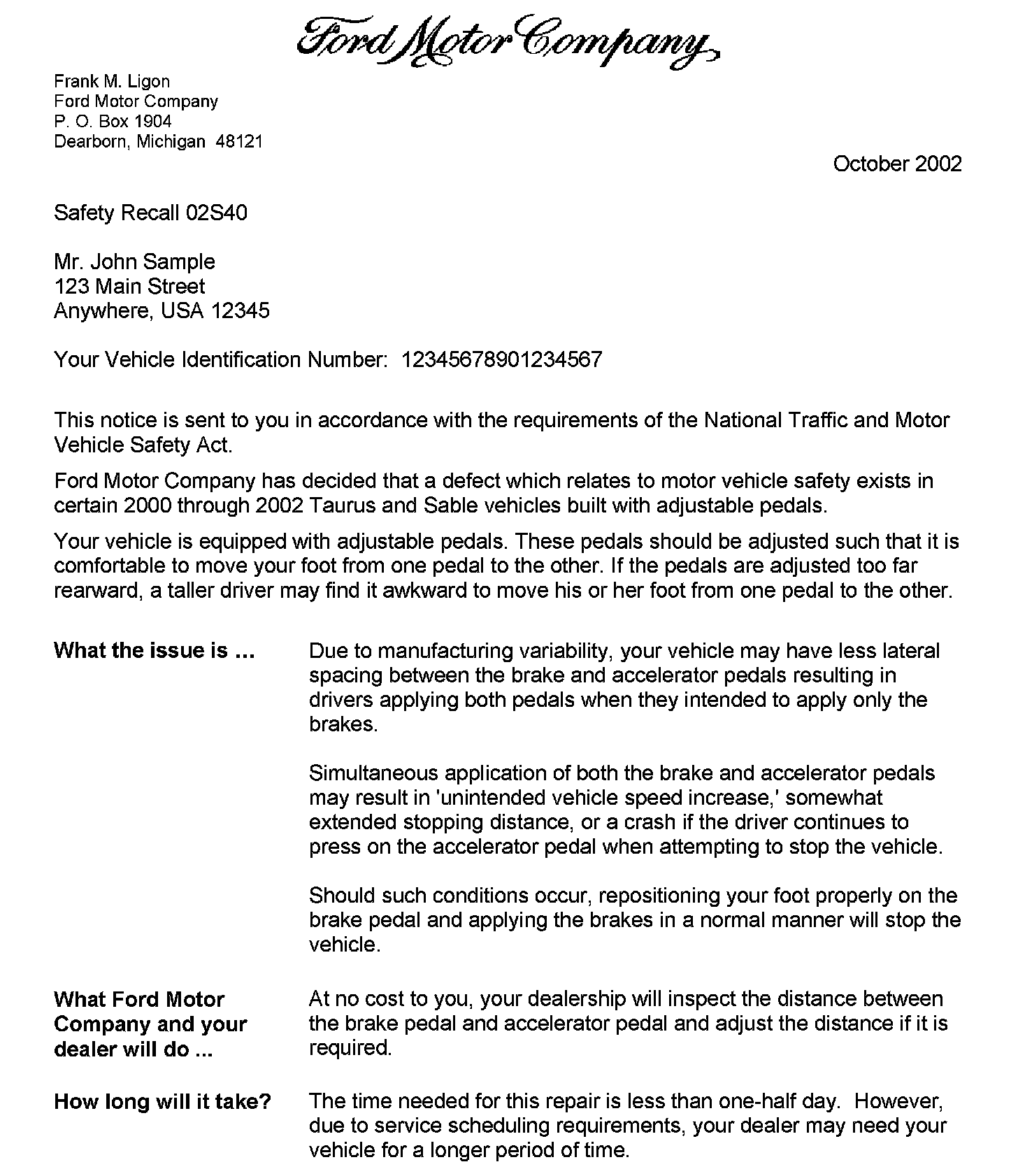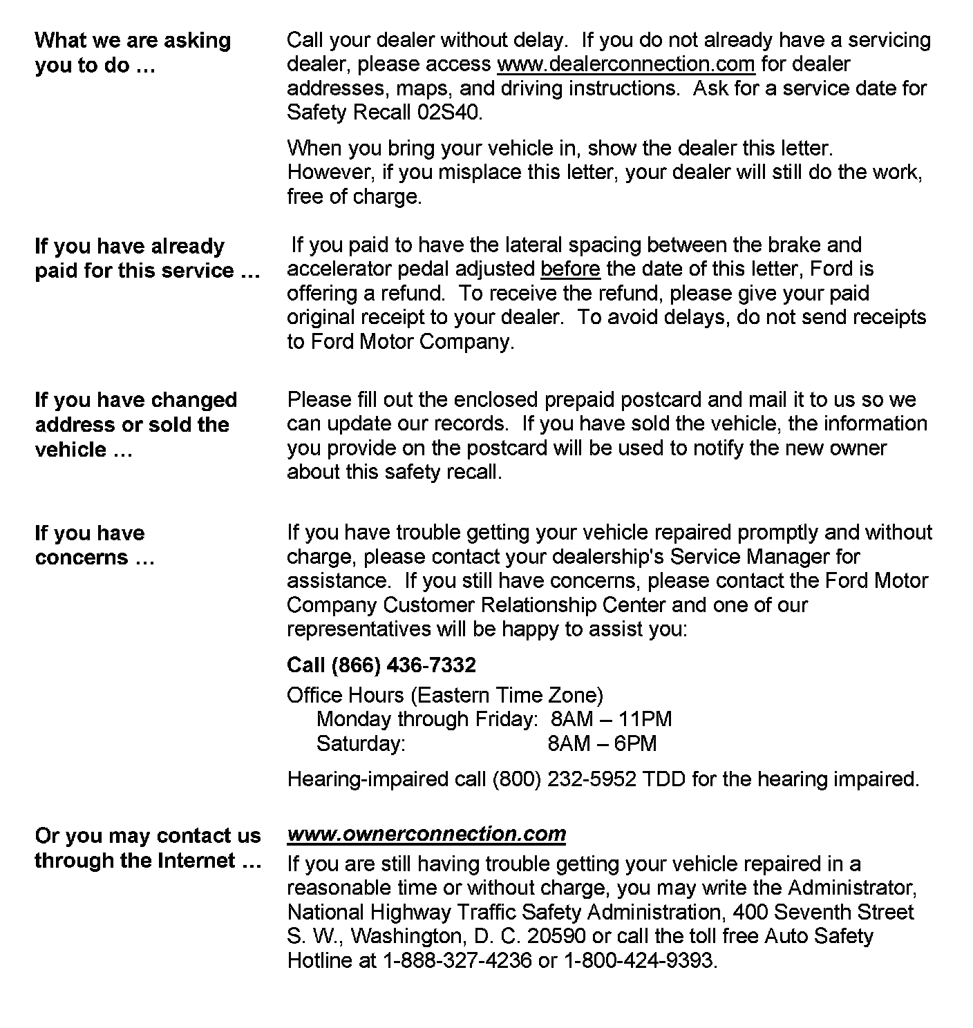 Recall - Brake/Accelerator Pedal Lateral Space Defect