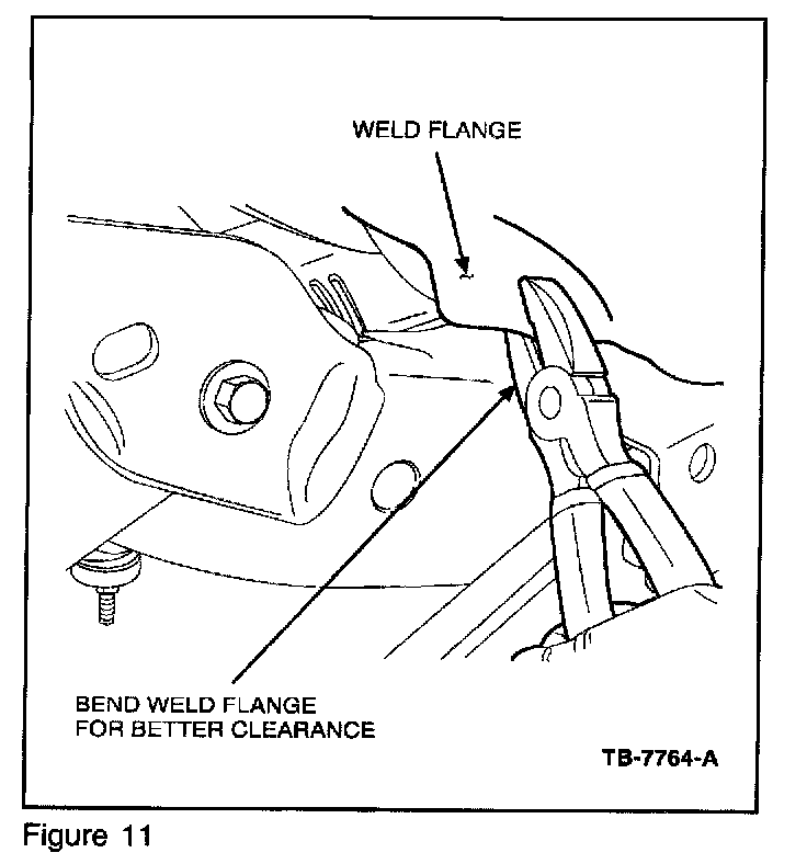 1. If necessary, bend the spot-welded flange at the bottom edge of the inner fender well for improved access~to the frame crack (Figure 11).