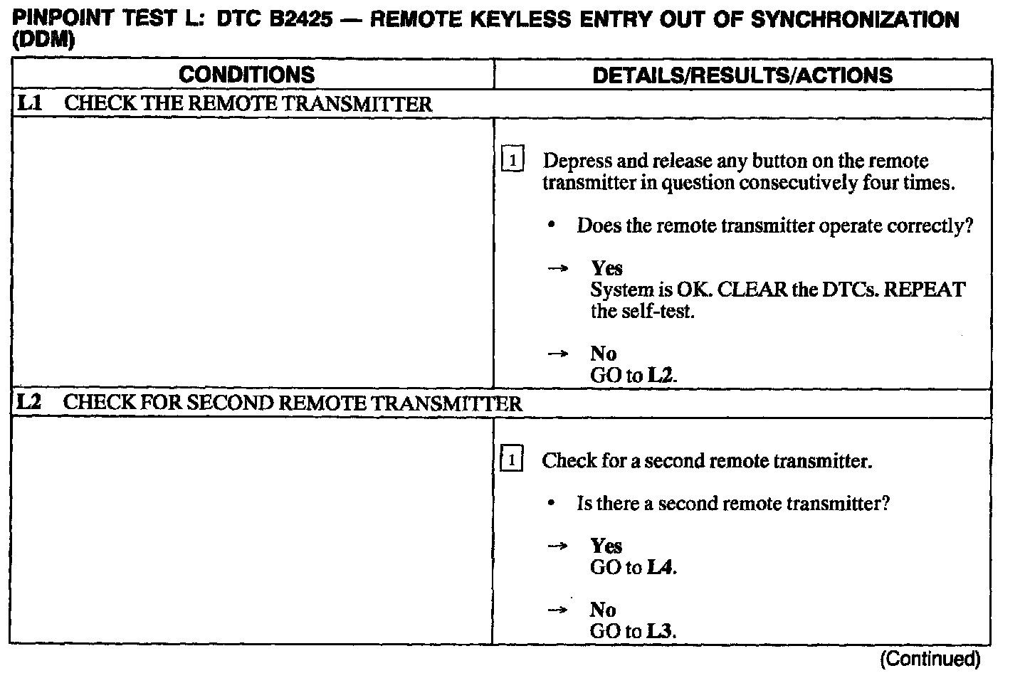 Test L: DTC B2425 - Remote Keyless Entry Out Of Synchronization (DDM)