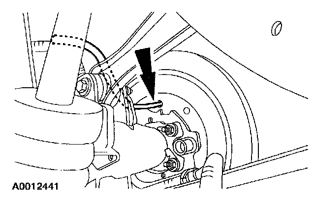 1. CAUTION: Never allow the rear disc brake caliper to hang from the brake hose. Provide suitable support.