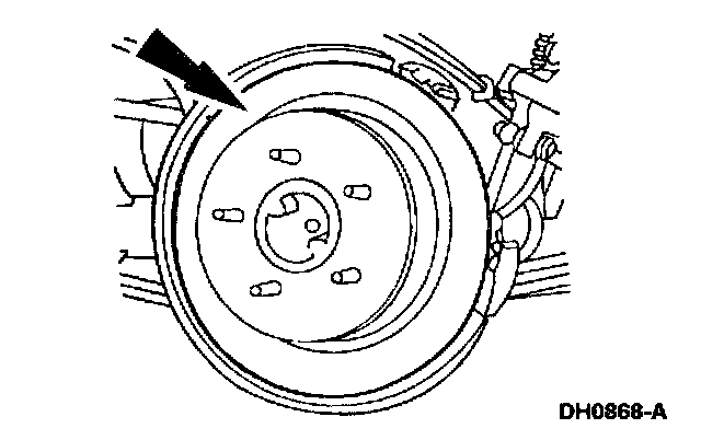 2. NOTE: If the brake disc binds on the rear parking brake shoe and linings, remove the adjustment hole access plug and retract the parking brake shoe and lining using an adjusting tool.