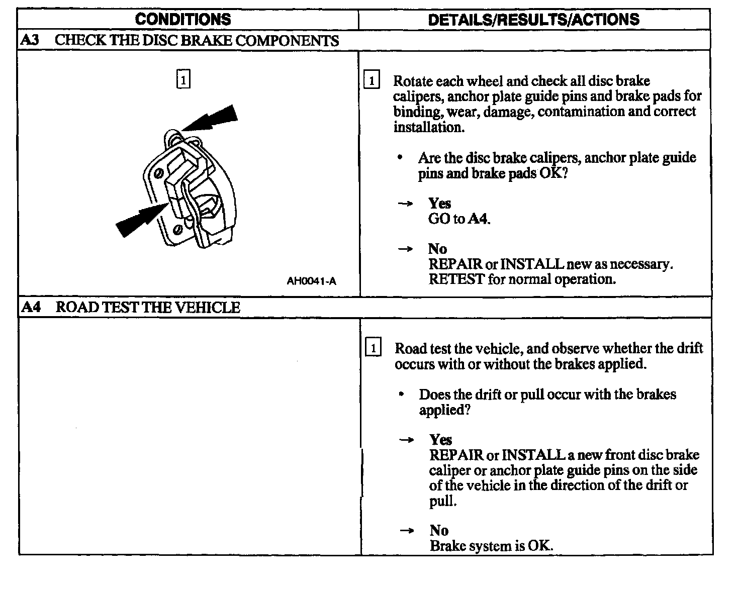 PINPOINT TEST A: THE BRAKES PULL OR DRIFT