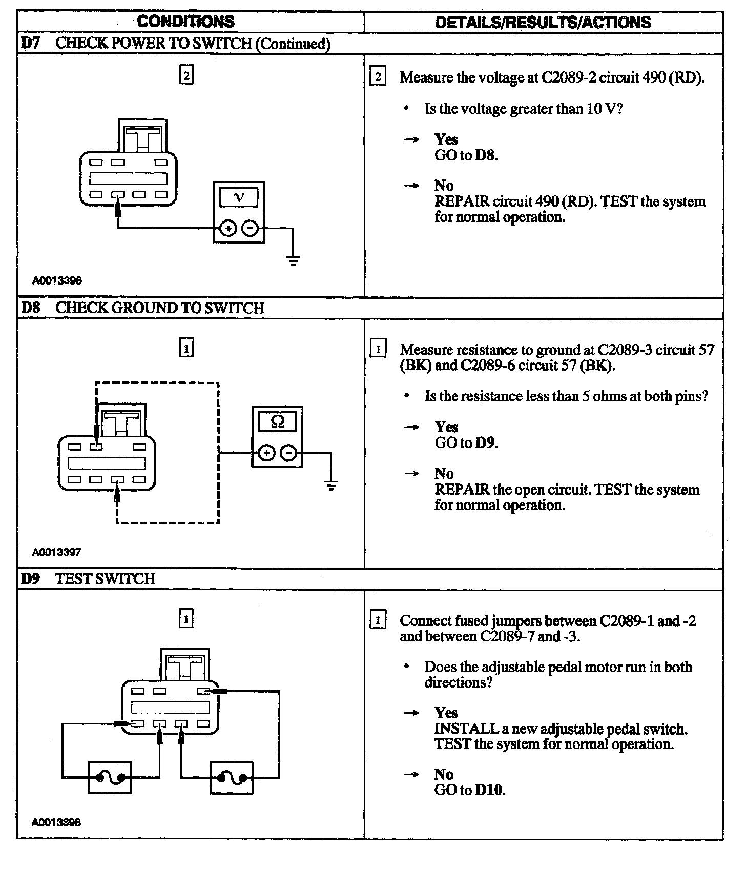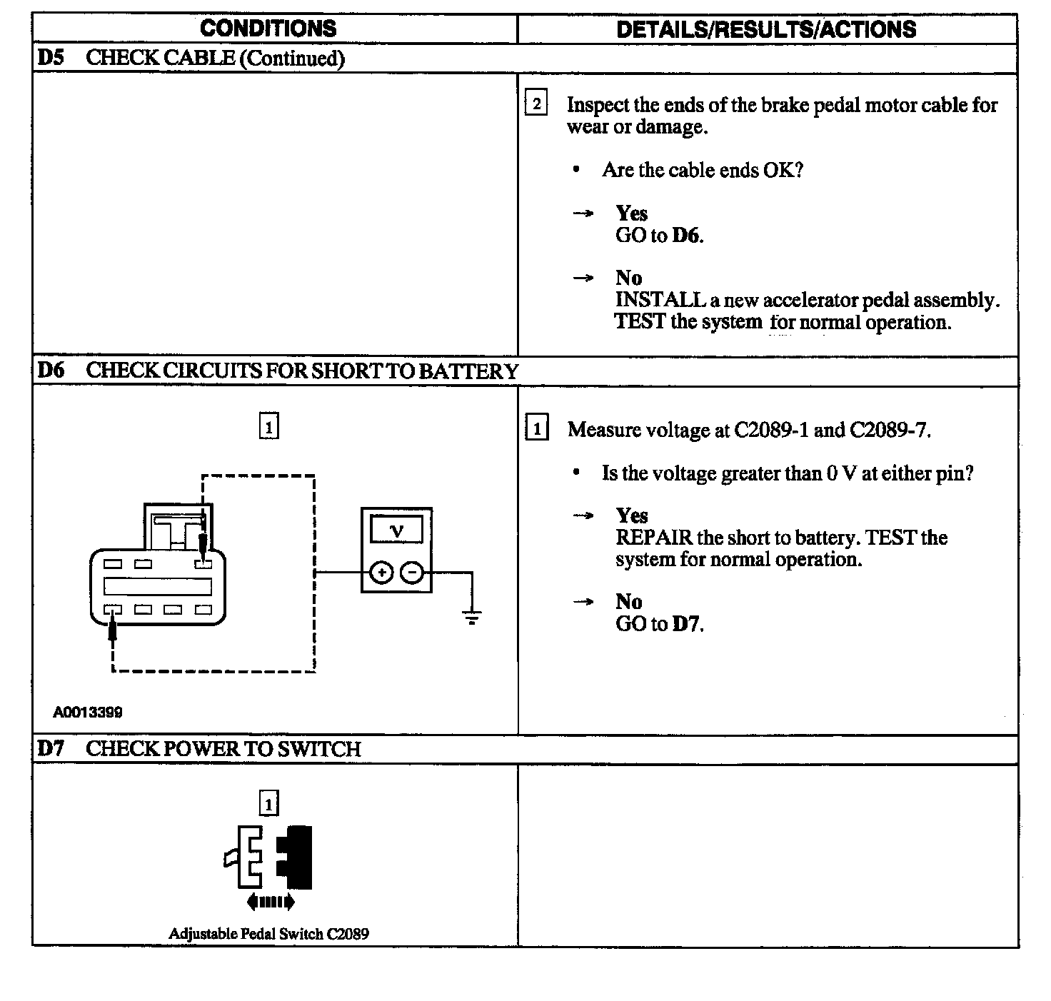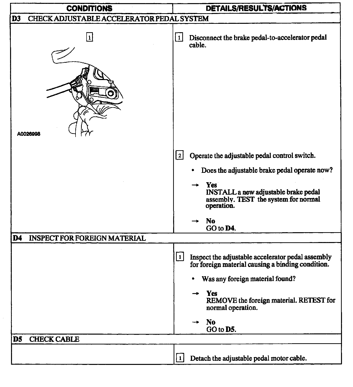PINPOINT TEST D: ADJUSTABLE BRAKE PEDAL INOPERATIVE
