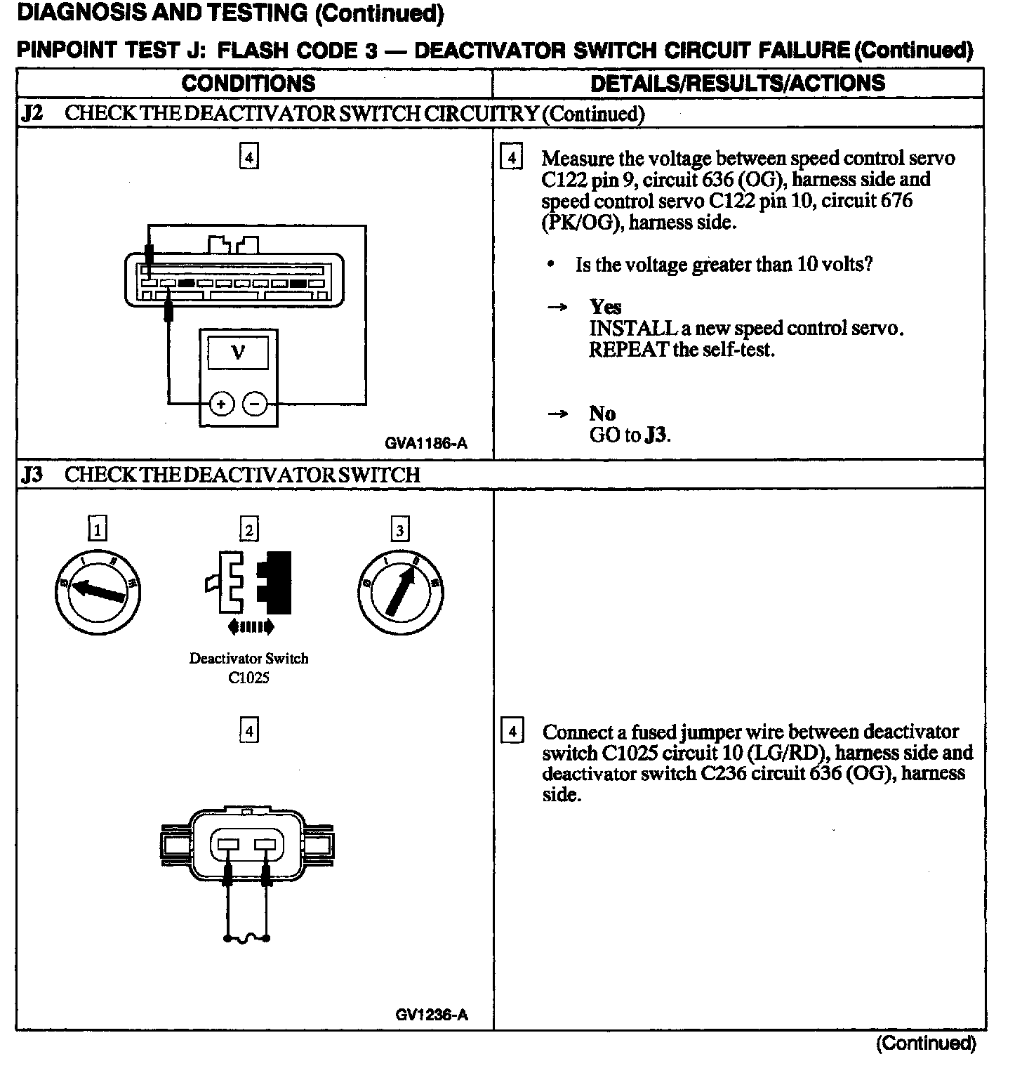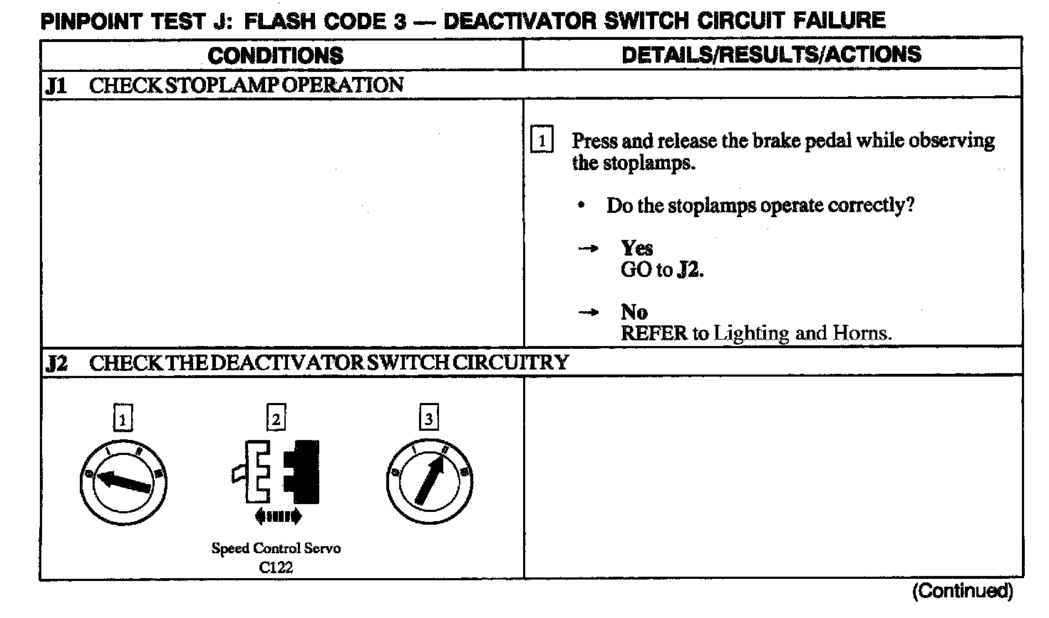 Test J: Flash Code 3 - Deactivator Switch Circuit Failure